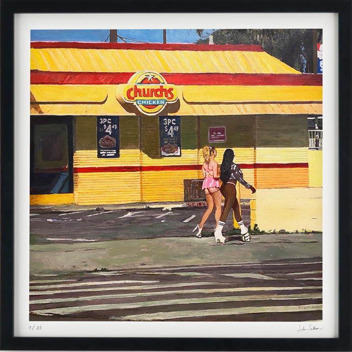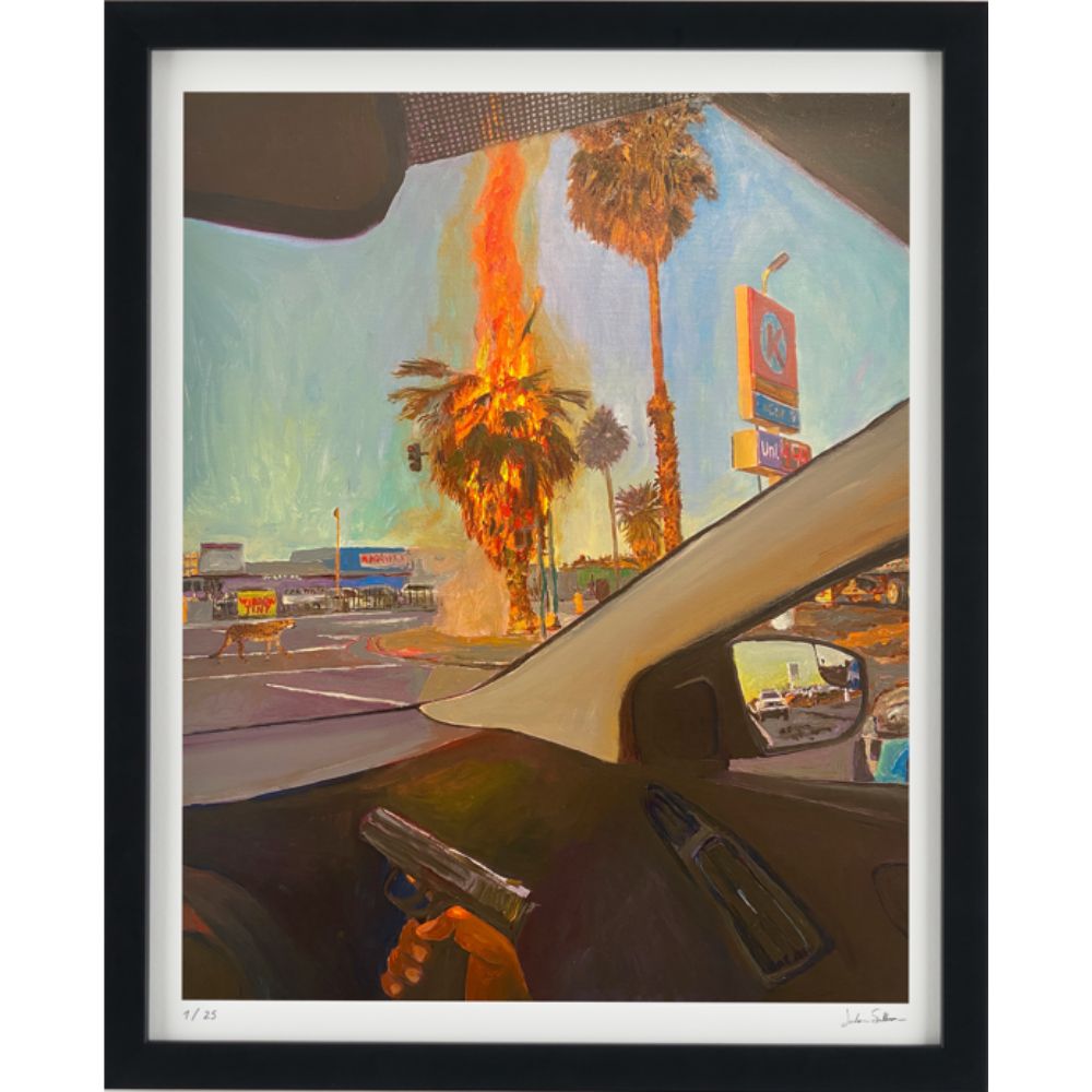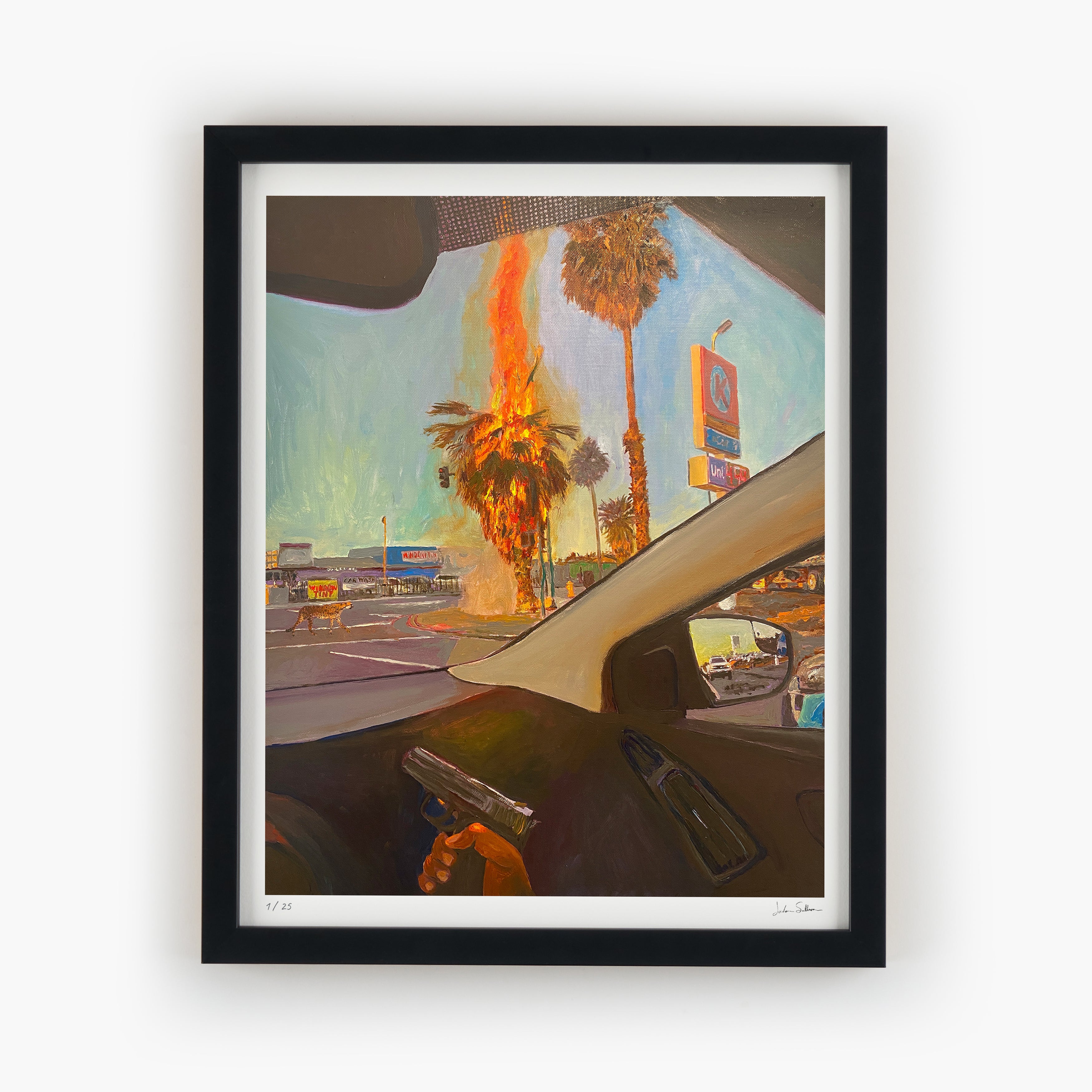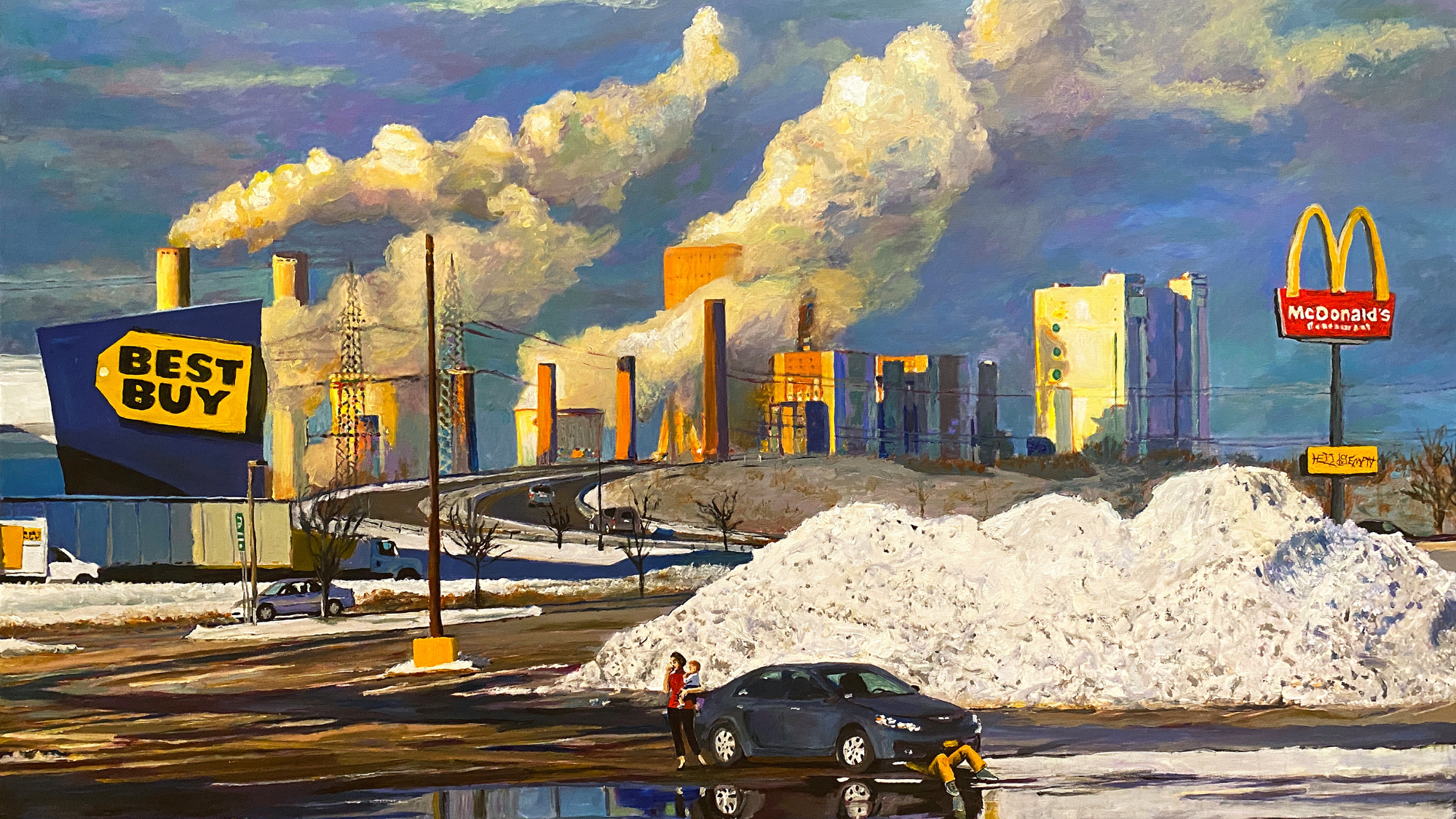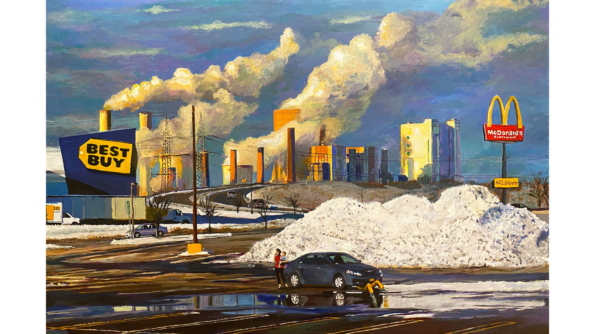 If psychosis is a breakdown of meaning, what my paintings attest to is how deviancy, addiction, fantasy and dreams of destruction are symptoms of living in a country that is impossible to make sense of. Any search for truth is betrayed by the vulgarness of life under capital. What then are we left with? My work attends to the real of the United States. If anything, the paintings are enchanted and perturbed by the strange beauty of the absurdity, isolation, addiction and horror that haunts this country.
